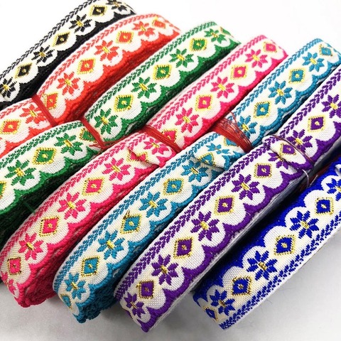 7 Metros 15mm Vintage étnico bordado Jacquard cinta adornos flores geométricas diseño ropa correas accesorio una sola cara
